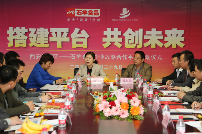 10月29日上午9時在集團總部,食品事業(yè)部牽頭發(fā)起的“石羊食品與市經(jīng)濟技術(shù)開發(fā)區(qū)企業(yè)戰(zhàn)略合作平臺啟動儀式”在三樓會議室隆重舉行,本次活動由食品事業(yè)部副總趙超主持、以“交流合作、共創(chuàng)未來”為主題,經(jīng)開區(qū)古都華天、魏家涼皮、小六湯包、桃李食品及穆堂香等十余家優(yōu)秀食品加工及餐飲連鎖企業(yè)悉數(shù)參加,管委會經(jīng)發(fā)局辛娟副局長、集團總裁助理孔紅民、食品事業(yè)部副總經(jīng)理王曉勇及項目發(fā)展部總經(jīng)理傅巧艷攜相關(guān)人員共二十余人出席。