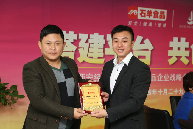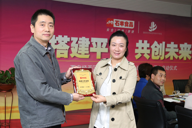在真愛餐飲集團采購部姚博總經(jīng)理和桃李食品做了表態(tài)發(fā)言后,辛娟副局長代表經(jīng)開區(qū)發(fā)表了熱情洋溢的講話,交流言辭懇切、互動其樂融融。最后進(jìn)行了戰(zhàn)略合作授牌儀式,石羊?qū)⒁粔K塊代表實力的“戰(zhàn)略合作伙伴”金牌授予了參會企業(yè),同時也將一份厚重的榮譽和深深的信任傳遞給了對方。下午,全體代表還興致勃勃地參觀了集團旗下兩大食品生產(chǎn)企業(yè):涇陽食品和邦淇公司,他們深為工廠先進(jìn)的硬件和科學(xué)的管理而嘆服,進(jìn)一步增強了攜手石羊、共創(chuàng)輝煌的信心和決心!