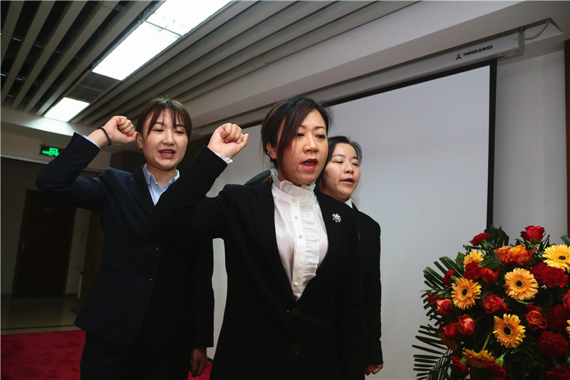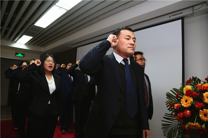 2020,總結過去是成績,迎接未來是目標。“我保證對企業的絕對忠誠,以飽滿的熱情投入到每一天的工作中……我將嚴格要求自己,用腳踏實地的行動、堅不可摧的信念,努力超越自我,全力以赴,不抱怨,不找借口,忠于目標,忠于企業……敢于吃苦,甘于奉獻,戮力同心,全力以赴,為全面完成2020年度各項目標任務而不懈奮斗!”誓詞響亮,誓言鏗鏘,這是石羊家人最真誠的內心獨白,是石羊家人最給力的團隊表達。目標宣誓不只是儀式,更是對自我的一種激勵,它將會融入和貫徹到日常的崗位工作中,并將轉化為行動。