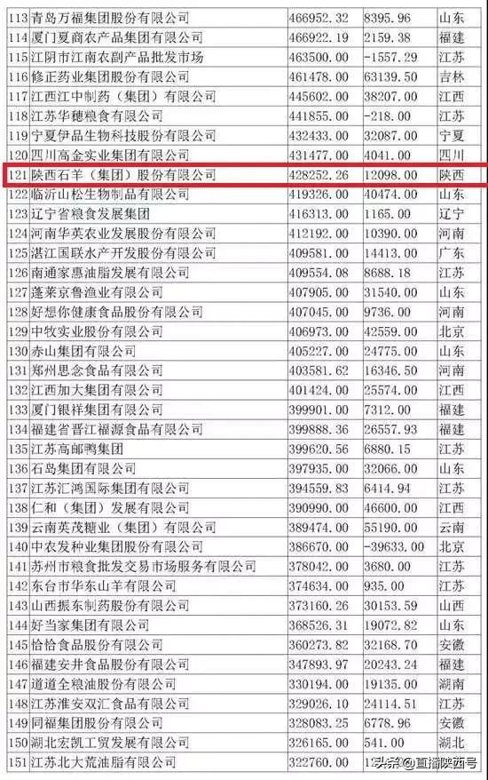陜西上榜的七家企業中,陜西石羊集團排名最高,位居第121位。