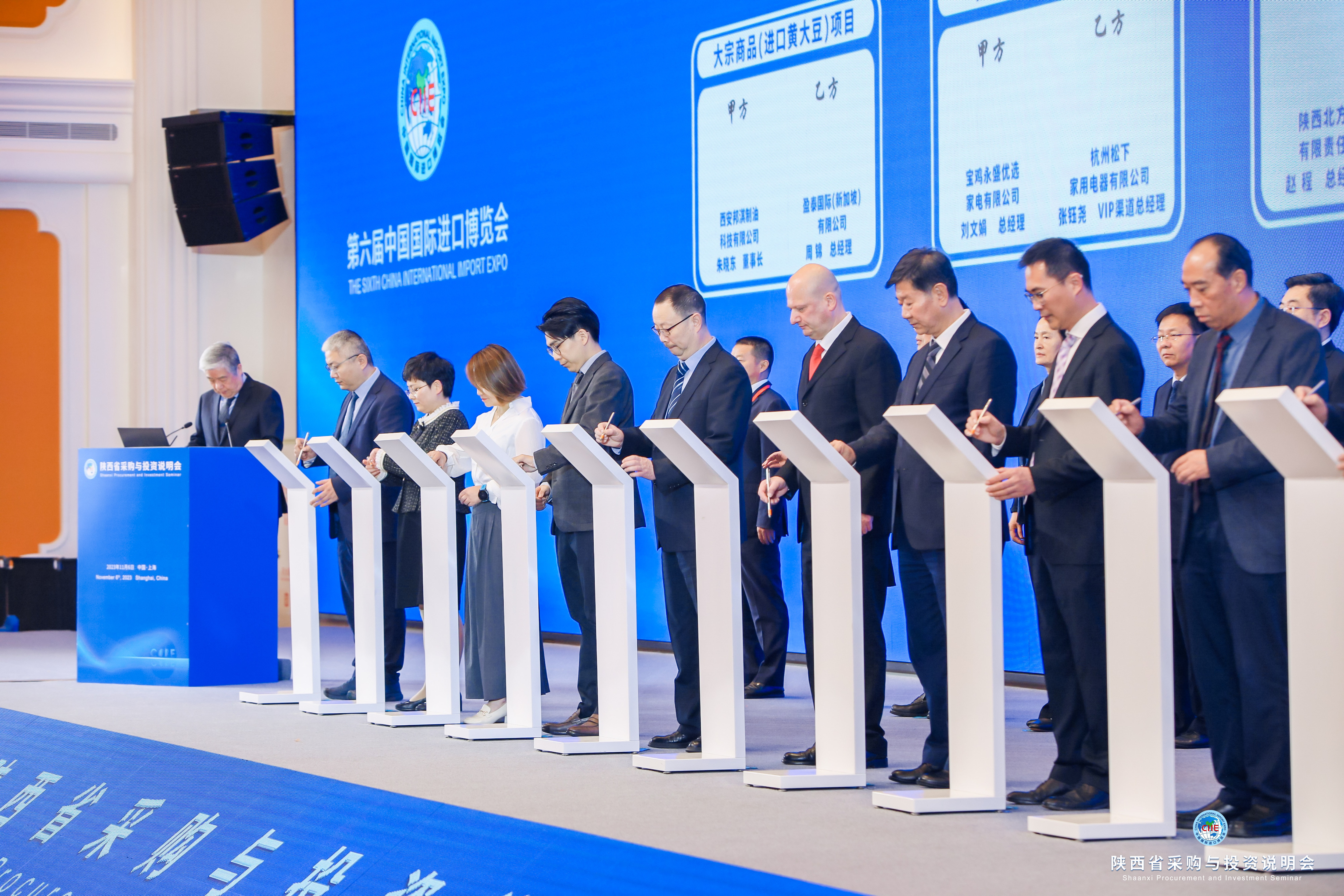 11月6日,在陜西省采購與投資說明會上,陜西省交易團與德國、法國、瑞士、新加坡、奧地利等國參展商共簽約采購合同項目16個,采購金額61億元。其中,西安邦淇制油科技有限公司與盈泰國際(新加坡)有限公司簽訂30億元的大宗農產品項目采購訂單。這是陜西企業在進博會采購金額最大的訂單。