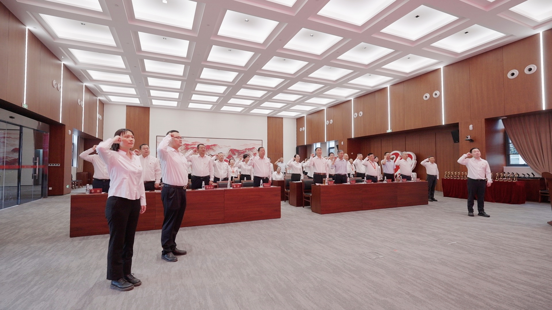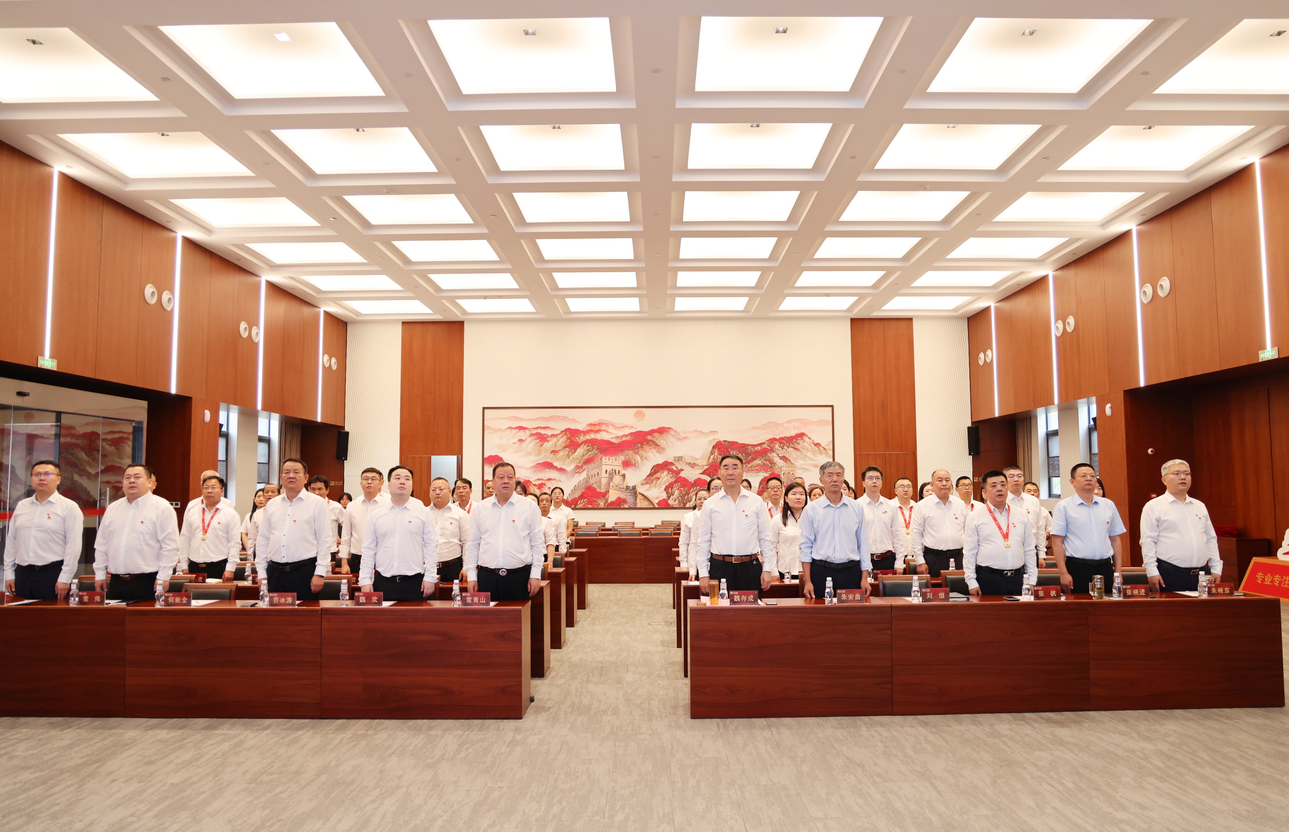 升旗儀式后,集團總裁魏歡帶領2名新黨員及36名黨員代表面向黨旗莊嚴宣誓。“我志愿加入中國共產黨,擁護黨的綱領……”,字字千鈞的誓言響徹全場,激蕩在每位黨員心間,激勵全體黨員在新時代新征程中奮勇爭先。