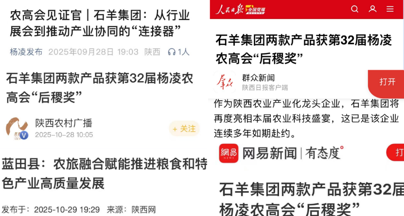 石羊集團(tuán)的亮眼表現(xiàn)和豐碩的榮譽(yù)也吸引了主流媒體的廣泛關(guān)注。人民日?qǐng)?bào)、農(nóng)民日?qǐng)?bào)、陜西日?qǐng)?bào)、陜西廣播電視臺(tái)、陜西農(nóng)村廣播、西安廣播電視臺(tái)、渭南廣播電視臺(tái)、楊凌電視臺(tái)、藍(lán)田縣廣播電視臺(tái)等中央、省、市、縣四級(jí)官方主流媒體,以及陜西網(wǎng)、鄉(xiāng)村振興新聞網(wǎng)、網(wǎng)易新聞網(wǎng)、騰訊新聞網(wǎng)等主流網(wǎng)絡(luò)媒體紛紛聚焦報(bào)道,使石羊集團(tuán)成為本屆農(nóng)高會(huì)上備受矚目的明星企業(yè),在眾多參展企業(yè)中脫穎而出,贏得了行業(yè)內(nèi)外的廣泛贊譽(yù)。五天時(shí)間,石羊集團(tuán)展位累計(jì)吸引100多萬(wàn)人次來(lái)訪參觀,充分展現(xiàn)了企業(yè)的品牌影響力與號(hào)召力。